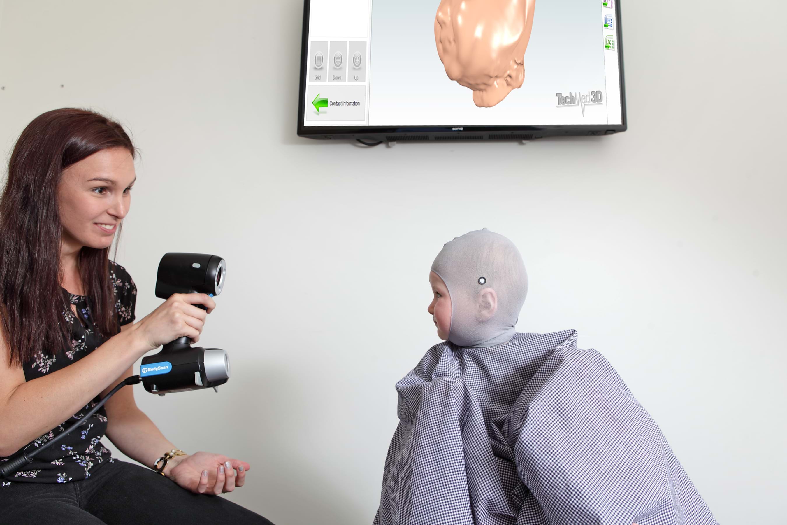 At Orthokids, our orthotists use a safe, non-contact 3D scan (like a camera taking lots of simultaneous photos) to assess your baby’s head shape.